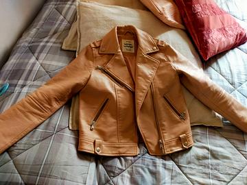 Vendo giacca di eco pelle color rosa ,con cerniere argentate in buone condizioni(difetto nel colletto,parte interna ,poco visibile) ma conservata bene!