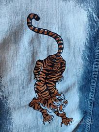 Sulla schiena ho dipinto su sfondo bianco una tigre tipica di quella cultura, simbolo di forza, potere, coraggio e protezione.