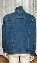 Iconica giacca in denim Levi's, modello Type Ill Trucker Jacket, realizzata in denim blu medio con lavaggio leggermente usurato. Caratterizzata da una vestibilità strutturata, presenta cuciture doppie a contrasto, chiusura frontale con bottoni in metallo e due tasche con patta e bottone sul petto, oltre a pratiche tasche laterali.