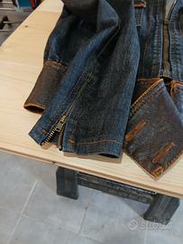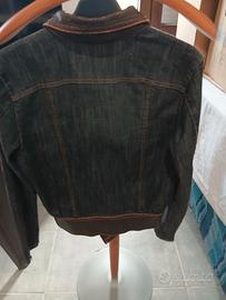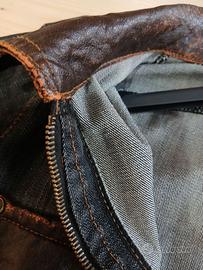 giacca di jeans con parti in pelle