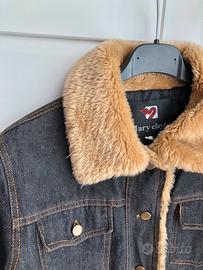 Giacca vintage di Jeans blu scuro, con rifiniture (maniche e colletto) di pelliccia. Bellissima indossata rare volte, ancora in ottime condizioni.