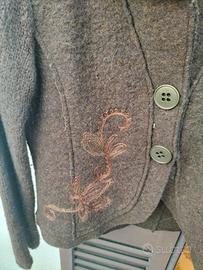 giacca marrone misto mohair taglia XL con ricamo dorato sul davanti