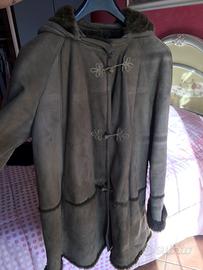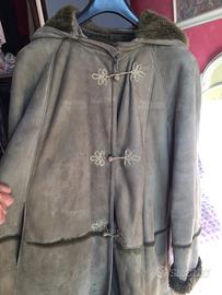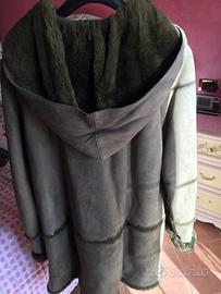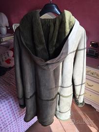 Vendo giaccone di pelle e pelo di montone color verde polvere da donna. Taglia 46-48