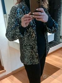 Giacca di paiette nuova, nera/argento, taglia M, "My Jewels".
