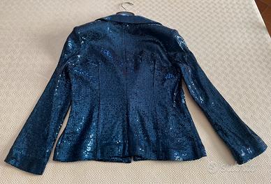 Giacca di paillettes blu. Elegante con un abito, casual con un jeans. Può essere abbinata all’abito blu da cocktailvenduto separatamente.
