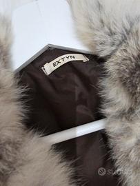 Giacca di vera pelle con lacci. Pelliccia di lapin. Prodotto italiano. Marca ""Extyn". Taglia 44. mai indossata. Taglio moderno.