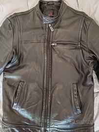 Giacca biker in pelle, modello Saguaro, con chiusura zip, tre tasche con cerniera, una orizzontale sul petto. Colletto a coreana con cinturino e bottone a pressione, interno foderato e leggermente imbottito, taschino interno porta oggetti e logo applicato sulla manica sinistra.