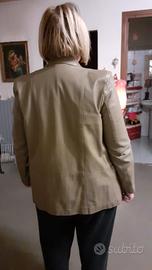 E' una giacca usata ma e' tenuta molto bene. Ha un colore sul verde e marrone e la sua taglia e' 40.