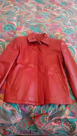 Giacca di pelle Rossa come nuova taglia 42, foderata, con cerniera e bottoni, due tasche esterne davanti, vendo causa inutilizzo.