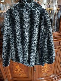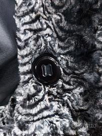 giacca di pelliccia sintetica color nero e grigio lunga cm 80 spalle cm 40