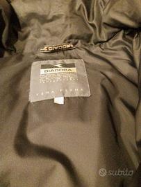 Giacca uomo Diadora, nera, imbottita con vera piuma. Taglia L abbondante. Misura spalle cm 56. Allacciatura con lampo e bottoni automatici. Interno integro. Presenta qualche segno di usura in corrispondenza dei polsi ma si puo' dire che complessivamente e' in buono stato