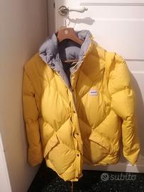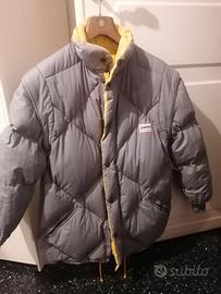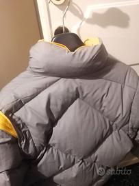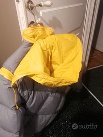 Giubbino uomo taglia L, reversibile giallo/grigio, cappuccio staccabile chiudibile all'interno del collo, maniche staccabili.