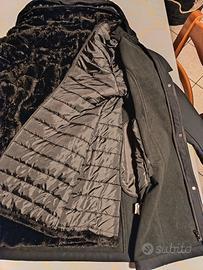 Giacca donna color nero mai usato parte esterna può essere usato come soprabito parte interna può essere usato come pelliccia o come piumino; unito fa una giacca molto pesante molto calda. Vendo perché mi è stato regalato con taglia sbagliata.