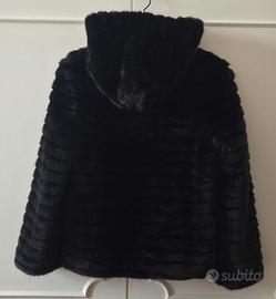 GIACCA DONNA ALBERTINI MILANO. Modello in pelliccia ecologica di alta qualità, con cappuccio, due tasche laterali e chiusura zip. Taglia M, colore nero, nuova con etichetta. Euro 28.