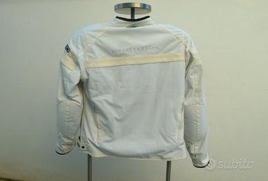 Giacca da donna in tessuto. 4 stagioni, bianca. Interno removibile, impermeabile. Paraspalle e paragomiti rimovibili, inserti in pelle, chiusura a zip anche per polsini. Regolabile in vita con cintura a clip automatiche. Tasca interna. Taglia L. Ritiro a mano in zona Roma, Anzio, Latina e limitrofe