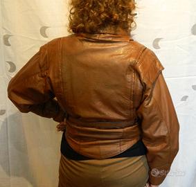 Giacca biker da donna. Non c’è cartellino in quanto è stata fatta artigianalmente su misura, in vera pelle, due tasche esterne, chiusura a bottoni con cintura, taglia M. Misure: