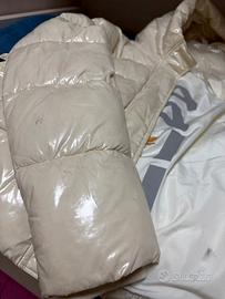 Giacca corta Canadian colore bianco effetto glossy; lievi segni esterni e fodera interno manica destra leggermente scucita tutto come da foto e zip tasca sinistra bloccata in chiusura
