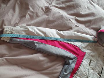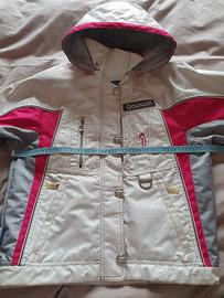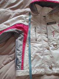 Giacca sci donna Marca GOLDWIN bellissima usata una volta, come nuova. Colore bianco con dettagli fucsia e grigi. Taglia 38 come da foto ma veste fino alla taglia 44 .misure : larghezza cm. 57; altezza cm. 64 ; manica raglan dal collo cm. 74 (vedi foto) . 4 tasche davanti di cui 1 sotto la scritta Goldwin porta skipass. 3 tasche interne. Collo leggermente imbottito. Polsi con strappi per poterla adattare. Vera occasione!!