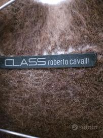Giacca donna lana e mohair,tg 44,di Class Roberto Cavalli,marrone e beige,colla a scialle e maniche a campana