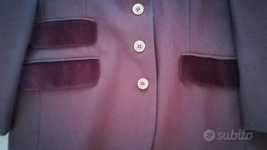 GIACCA da donna tg. 44 in panno bordeaux, marca DIARIO, modello 3 tasche con inserti e collo in velluto. Vintage, in ottime condizioni.