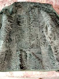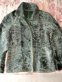 Giacca vintage double-face. Una parte è scamosciata l'altra di pelliccia. La parte scamosciata ha l'effetto vintage . Colore verde scuro. Usata poco