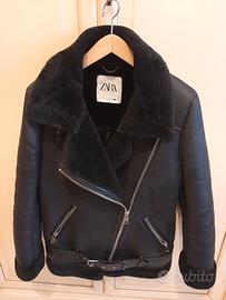 Giacca biker donna nera in ecomontone con pelliccia shearling, indossata pochissimo.
