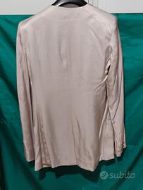 bellissima giacca donna elegante H&M grigio perla con collo nero in morbido tessuto viscosa leggermente lucido , bottoni in metallo , taglio sagomato che modella la figura , condizioni ottime , taglia EUR 38