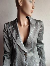 Giacca donna un bottone corta Emporio Armani, sfiancata, foderata, tessuto in lava e viscosa, taglia IT42, in ottime condizioni, senza segni di usura, modello con spalline, made in Italy, spalle cm 40, manica cm 62, lunghezza cm 51