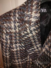 Giacca donna 3/4, marca Zara, taglia S, fantasia nei colori marrone, blu, panna, usata 1 volta.