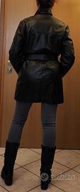 Giacca 100% pelle, colore nero, taglia M, lunghezza cm 90, con taschino interno.