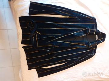 Giacca in velluto nera a righe oro di Zara. Modello accappatoio con cintura cucita. Taglia S
