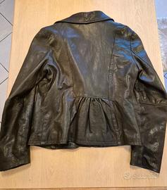 Giacca in pelle naturale, bellissima, con collo in morbida pelliccia removibile