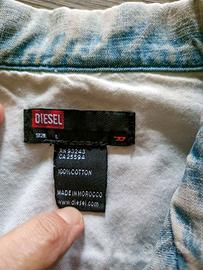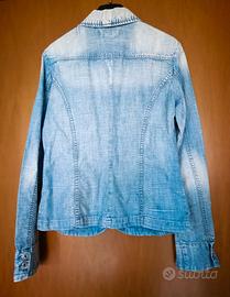 Vintage anni '90, stone washed, maniche lunghe, modello classico a due tasche davanti, abbottonatura frontale, logo su tutti i bottoni.
