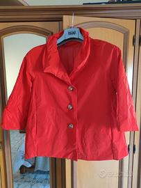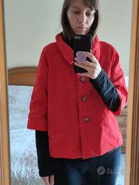 Giacca donna rossa elegante, taglio corto con maniche 3/4. Taglia adatta M,L Chiusura con bottoni grandi frontali, stile minimal e moderno. Tessuto leggero, perfetta per primavera/autunno. In ottime condizioni. moda outfit primavera autunno stile minimal lookdonna itala qualità