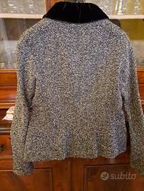 Giacca donna , ottime condizioni. Taglia 42 . Luisa Spagnoli. lana e acrilico. Fiore, bottoni e collo in velluto. Manica reglan. Misura ascella46, lunghezza 57 cm