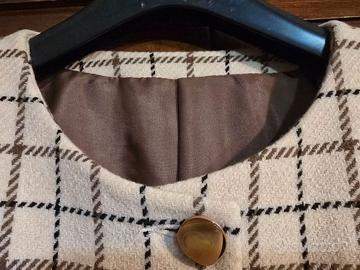 Elegante giacca donna collo rotondo mod. CHANEL in colore bianco panna a quadretti marroni in lana 70% - 10% cachemire e 20% poliammide.