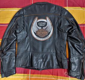 Giacca da donna in morbida pelle nera, commemorativa del 105th Anniversary, serie limitata, originale Harley Davidson,taglia S, misure precise nelle ultime foto, indossata pochissimo, condizioni perfette, nessun difetto, prezzo non trattabile.