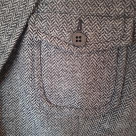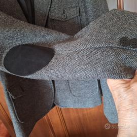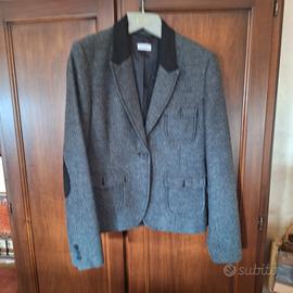 Giacca PIMKIE nuova in tessuto spigato grigia con colletto e para gomiti sulle maniche, in tessuto nero simile al vellutino Ad un bottone con due tasche ed un taschino tutti con pattina e bottone Fodera nera Modello classico tipo retrò, un po' sancrato Nuova mai indossata La misura sull'etichetta è 46 ma veste una 44 Composizione tessuto: 30% lana 40% poliestere 20% acrilico 10% Ohter fibres Fodera 100% poliestere Misure: Spalle cm.42 Dalle spalle al fondo cm.61 Vita cm. 43 Manica cm 62 Larghezza da sotto giro manica cm 49