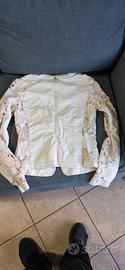 giacca da donna in ecopelle, bianca e lavorata sulle maniche.