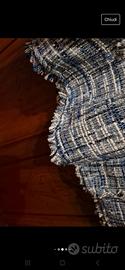 Giacca elegante chiusura zip e bottoni automatici tessuto nella tonalità dell azzurro con micro fili laminati argento non visibili in foto tg 52