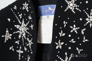 introvabile iconica giacca donna Thierry Mugler con cristalli Swarovski Tg42 colore nero