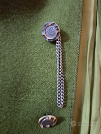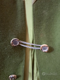 Giacca donna originale tirolese verde smeraldo, taglia 44, 100% lana, bottoni in legno e inserti ricamati in pelle scamosciata
