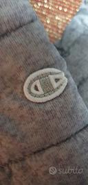 Giacca donna trapuntata leggera Champion tg 42, modello leggermente sfiancato, cappuccio non staccabile, 2 tasche esterne con cerniera. Colore grigio chiaro irregolare come da foto.