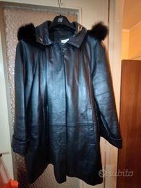 Giacca donna in vera pelle Taglia 50 Marca Conbipel Colore nero Cappuccio con bordature in pelliccia Spedizione e ritiro a mano