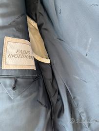 Giacca doppiopetto blu con riga sul viola , foderata marca fabio inghirami , made in italy con spalline . Tg 50, ha qualche macchiolina quasi impercettibile spiega il prezzo, ne ho molte altre tg 50 tutte made in italy NON doppiopetto
