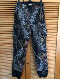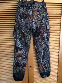Completo giacca e pantaloni Univers mimetico Mossy Oak in morbida microfibra waterproof. Giacca taglia 50 foderata in leggero micropile con cappuccio staccabile. Pantaloni taglia 48 foderati in poliestere traforato. Tante tasche con cerniere ermetiche e carniere posteriore con membrana impermeabile.