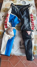 Giacca e pantaloni moto in pelle marca Dainese taglia 48 che può diventare tuta intera con protezioni spalle, gomiti e ginocchia vendo per inutilizzo ormai porto taglia 52.