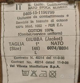 Mimetica militare originale dell'Esercito Italiano con mimetismo Woodland, in dotazione negli anni '90, taglia L.