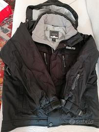 Completo da sci / snowboard da ragazzo tg S, h cm 164. Giacca nera e pantaloni verdi, ancora come nuovi, misure: giro vita cm 80 lunghezza gamba dal cavallo cm 72, ascella/ manicca cm 53.