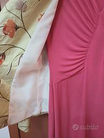 vestito colore corallo, scollo a v, in viscosa, morbido segue le forme senza segnarle,
